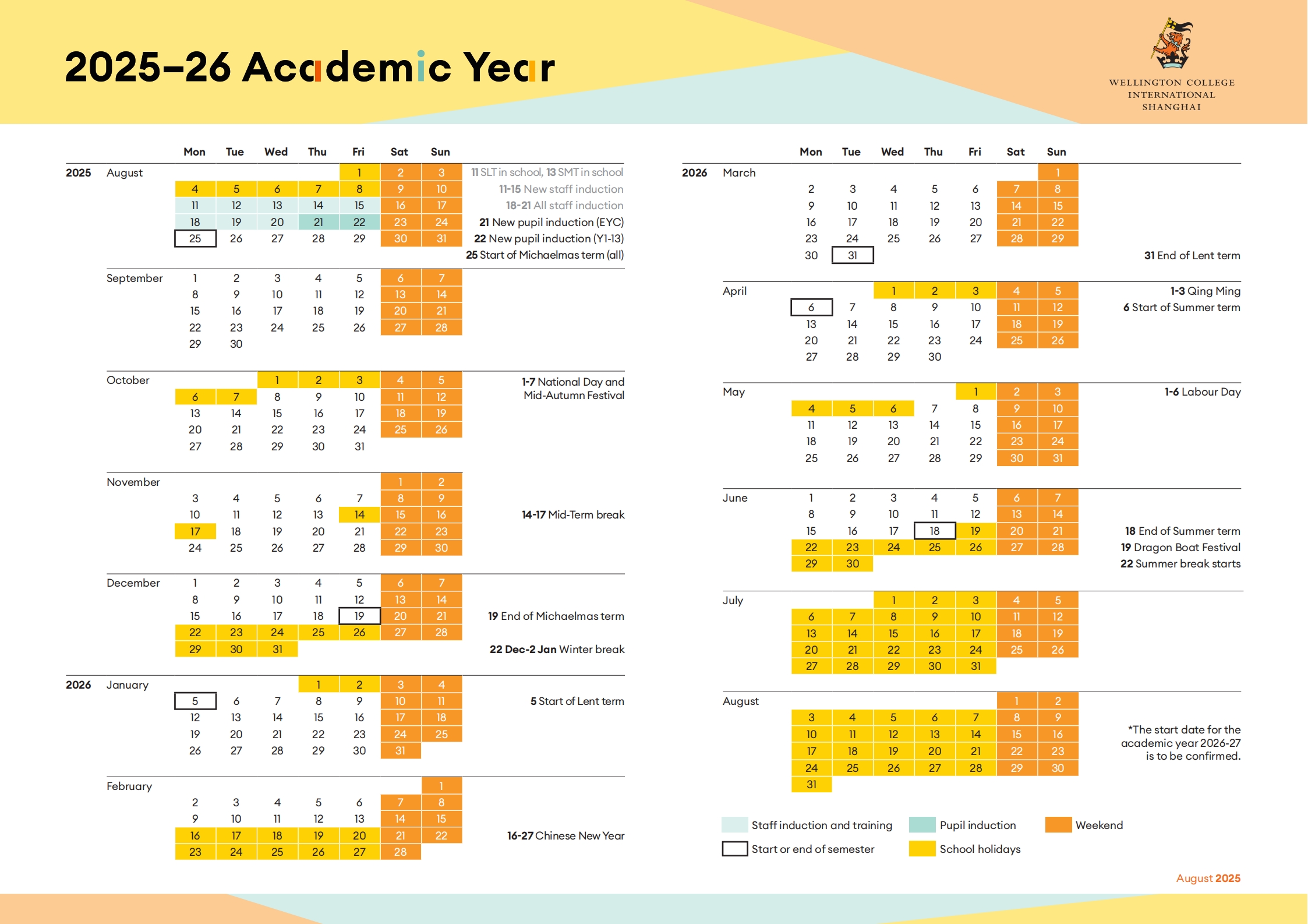 2025-26学年校历