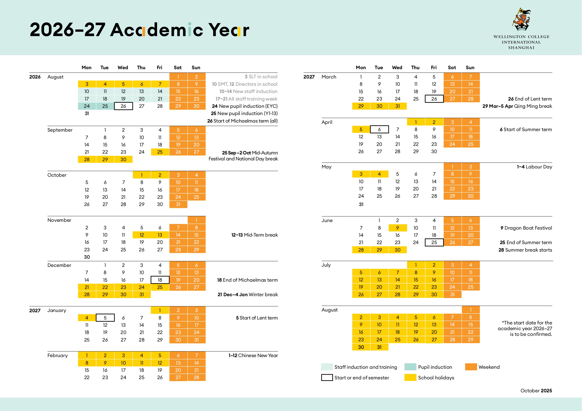 2026-27学年校历